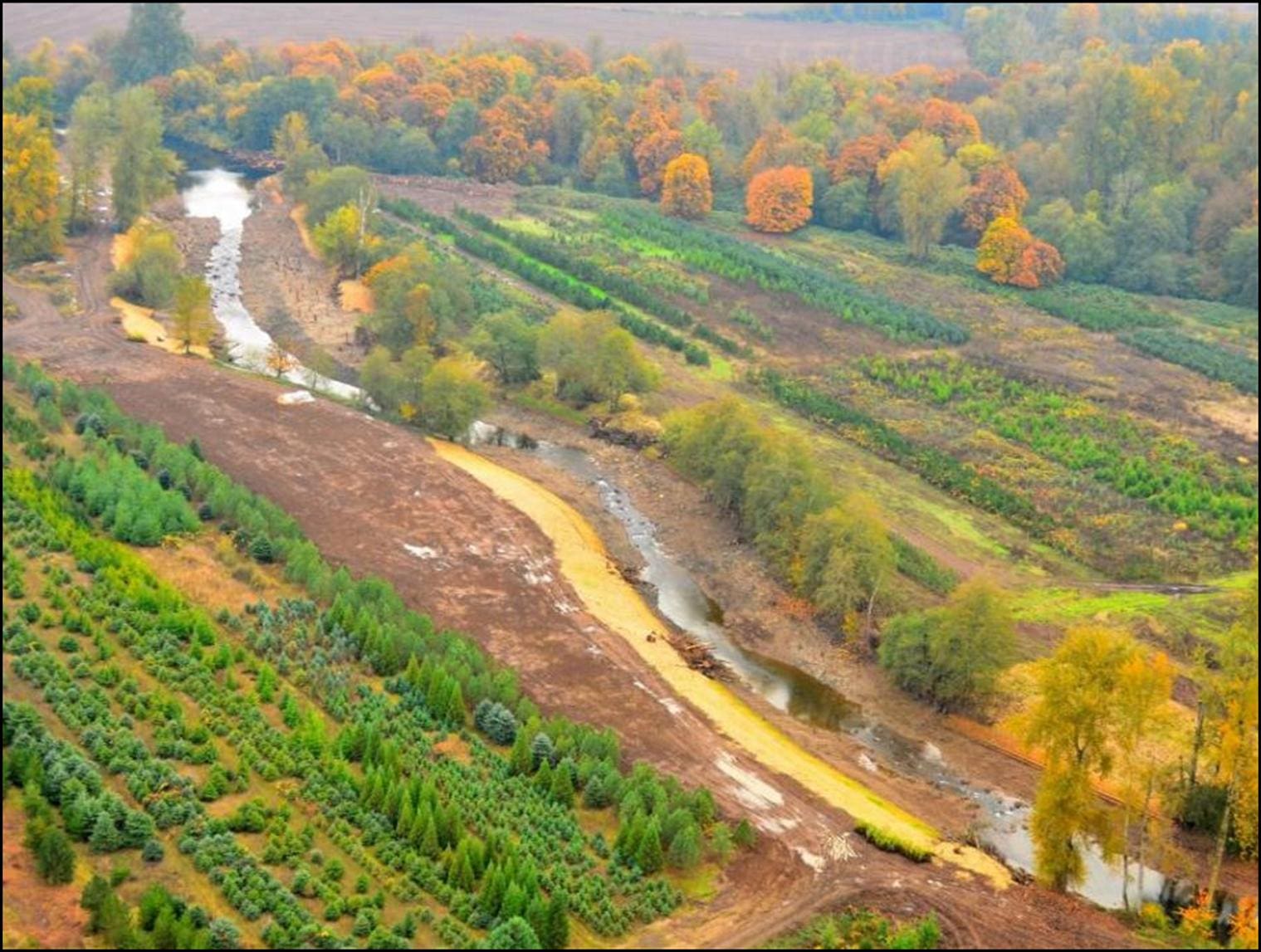 The bifurcation becomes plugged with sediment and woody debris and requires maintenance in order to keep the Calapooia River channel active.