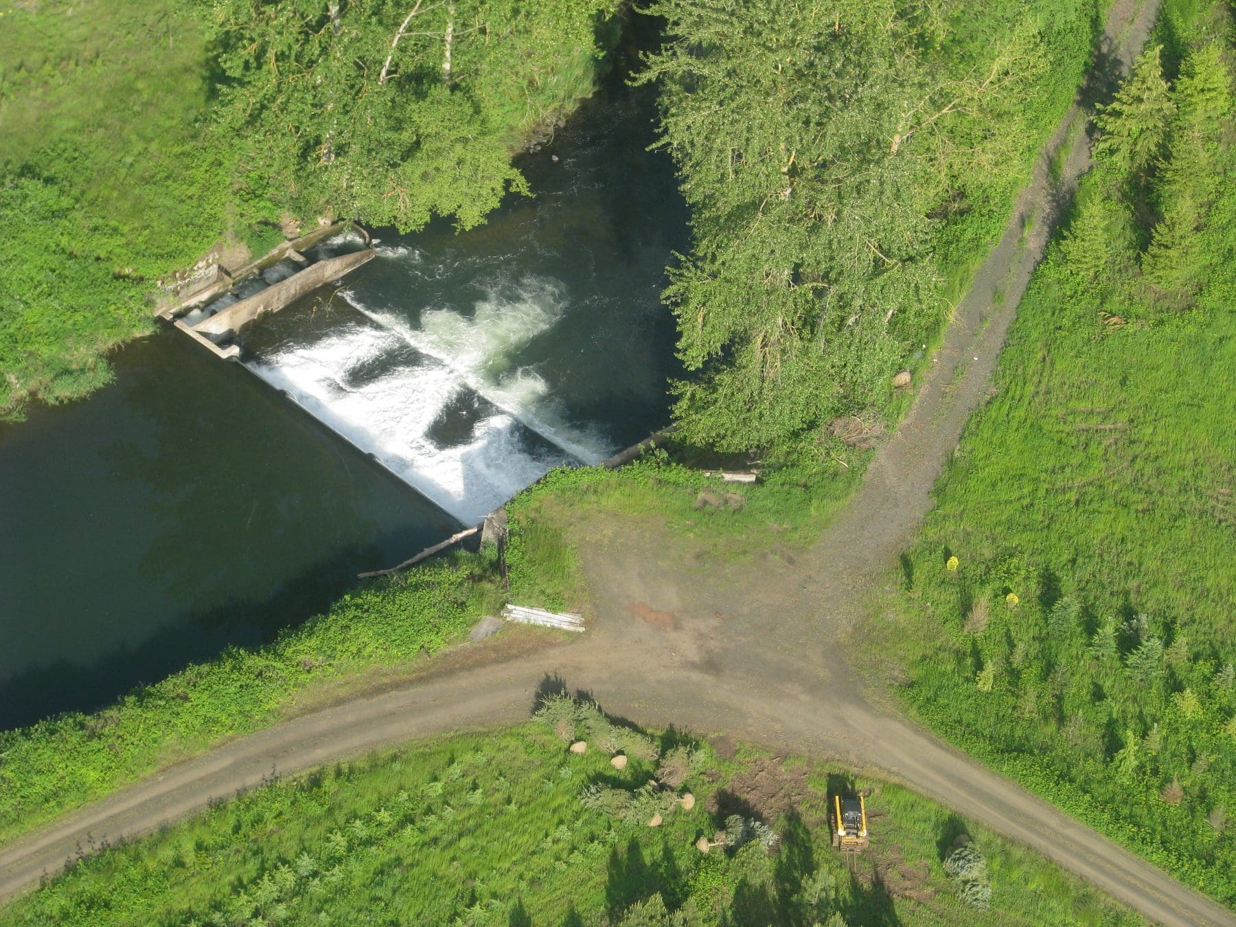 The original structure was a push-up dam, then later a wooden crib dam and finally in 1957, the concrete structure that was removed. The dam was an integrated weir and pool fishway, located approximately 1,400-ft downstream of the bifurcation of the Sodom Channel and the Calapooia River, just downstream from Calapooia RM 19.